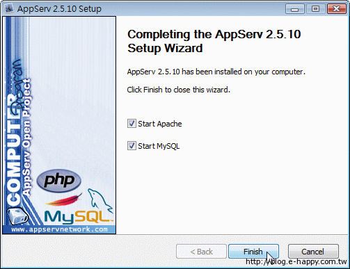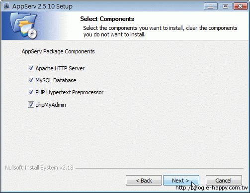 目前我們將使用 AppServ 2.5.10 的版本,其中所含各軟體的版本如下: